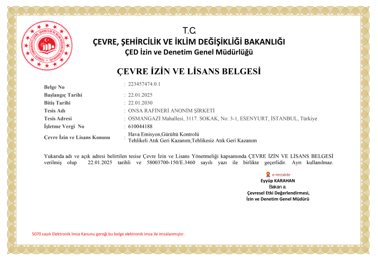 @2025 - All rights reserved Onsa Rafineri.