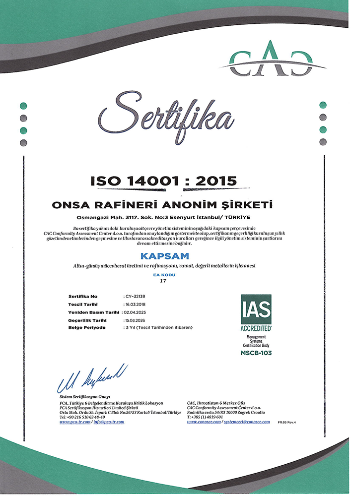 Tüm çalışanlarımız ISO 9001, 14001 ve OHSAS 18001, ayrıca laboratuvar ekibimiz ise ISO 17025 sistemlerine uyumlu, destekleyici ve geliştirici anlayışla görev yapmaktadır.